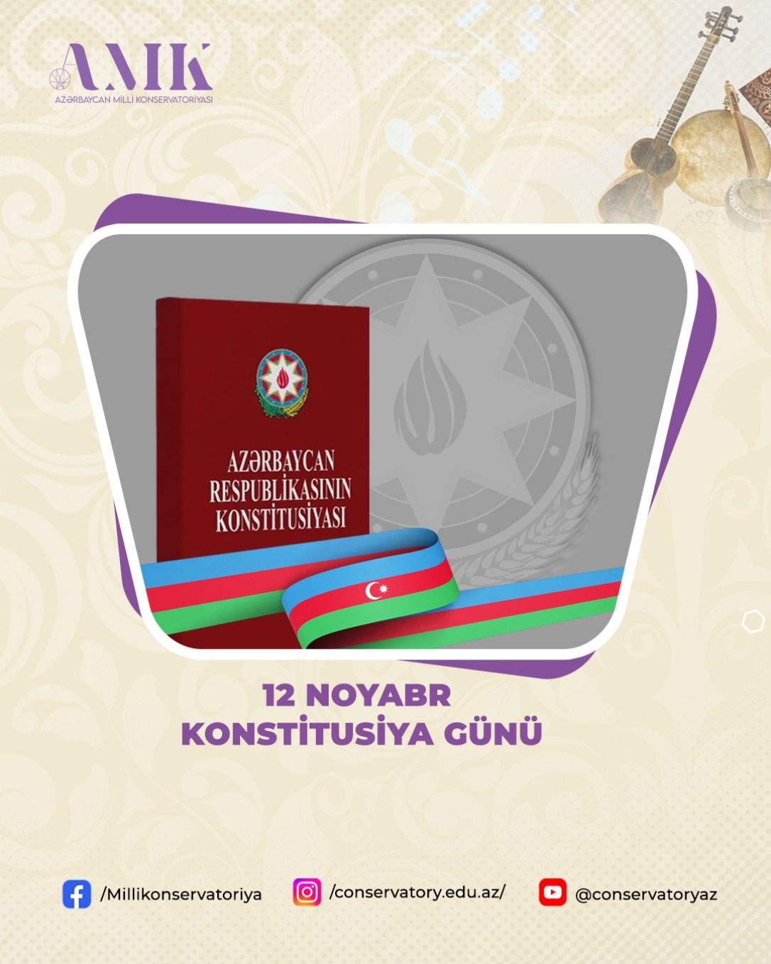 Xalqımızı 12 noyabr — Azərbaycan Respublikasının Konstitusiya Günü münasibətilə ürəkdən təbrik edirik!