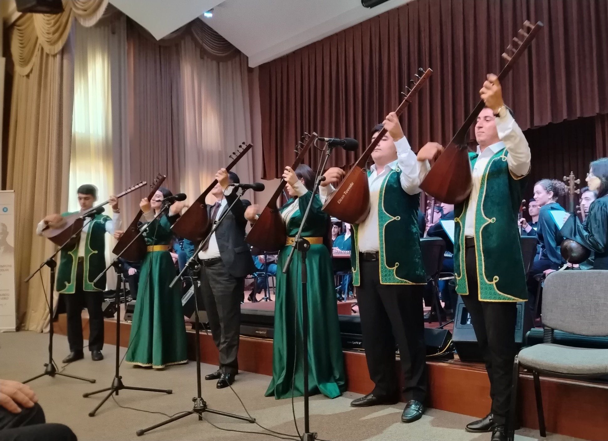 Ardınca Mirəli Sarızadə və Ülkər Abdullayevanın ifasında “Qarabağ” kompozisiyası (tarda – Kamal Şükürov, kamançada – Pərviz Fərhadov, nağarada – Siyavuş Kərimov); Əməkdar artist, Populyar Musiqi və Caz kafedrasının müdiri Emil Əfrasiyabın ifasında “Parafraz” əsəri təqdim olunub. Aşıq Ələsgərdən Üzeyir Hacıbəyliyə uzanan bu mənəvi körpünü əks etdirən proqram sonda AMK tələbələrindən ibarət Xalq Çalğı Alətləri orkestrinin ifasında Ü. Hacıbəylinin “Koroğlu” operasından “Cəngi” əsəri ilə başa çatıb.