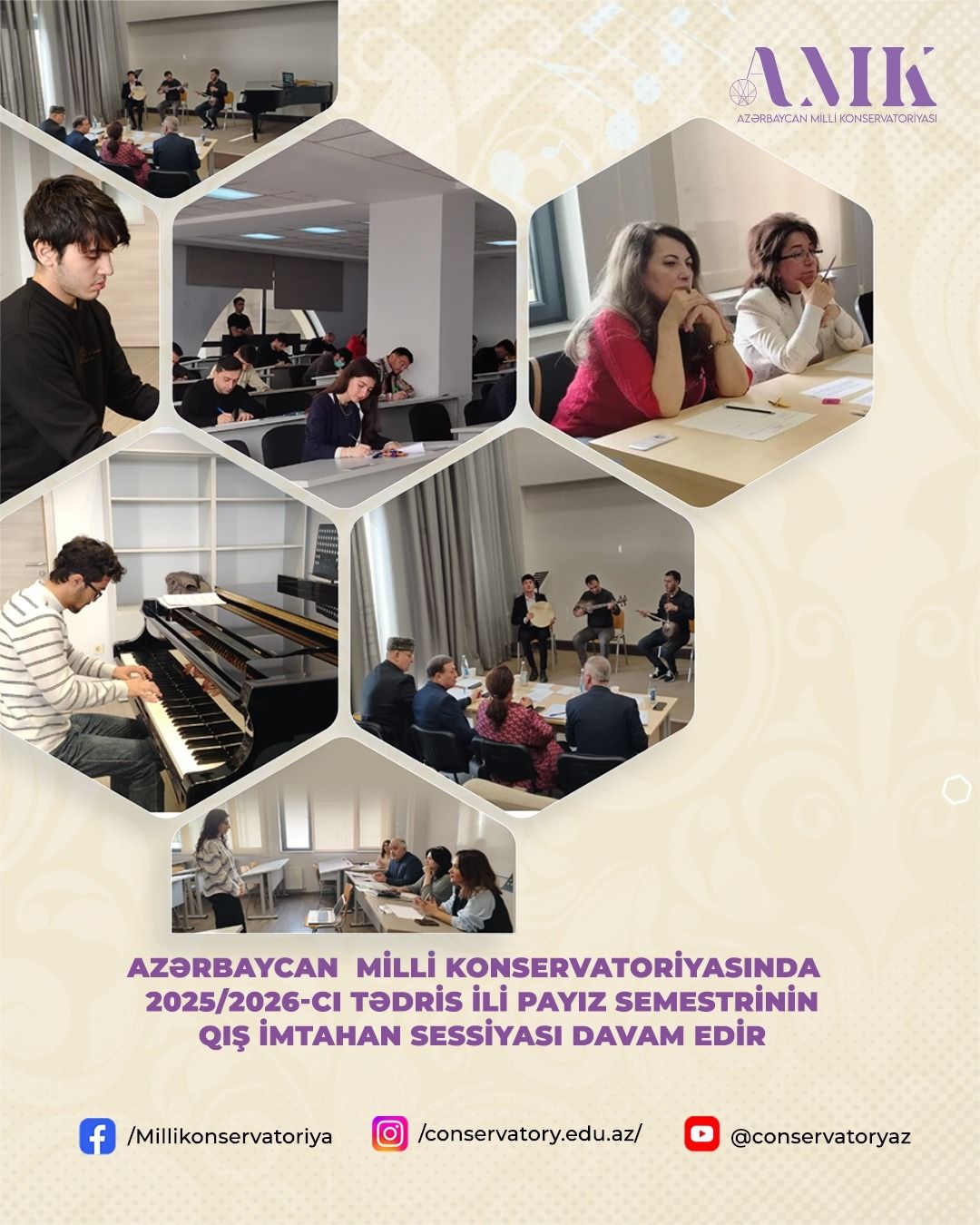 Azərbaycan Milli Konservatoriyasında 2025/2026-cı tədris ilinin payız semestri üzrə qış imtahan sessiyası davam edir.