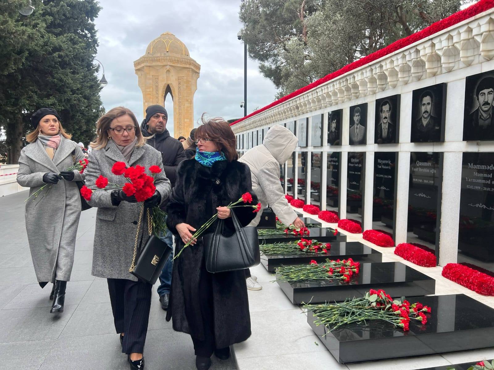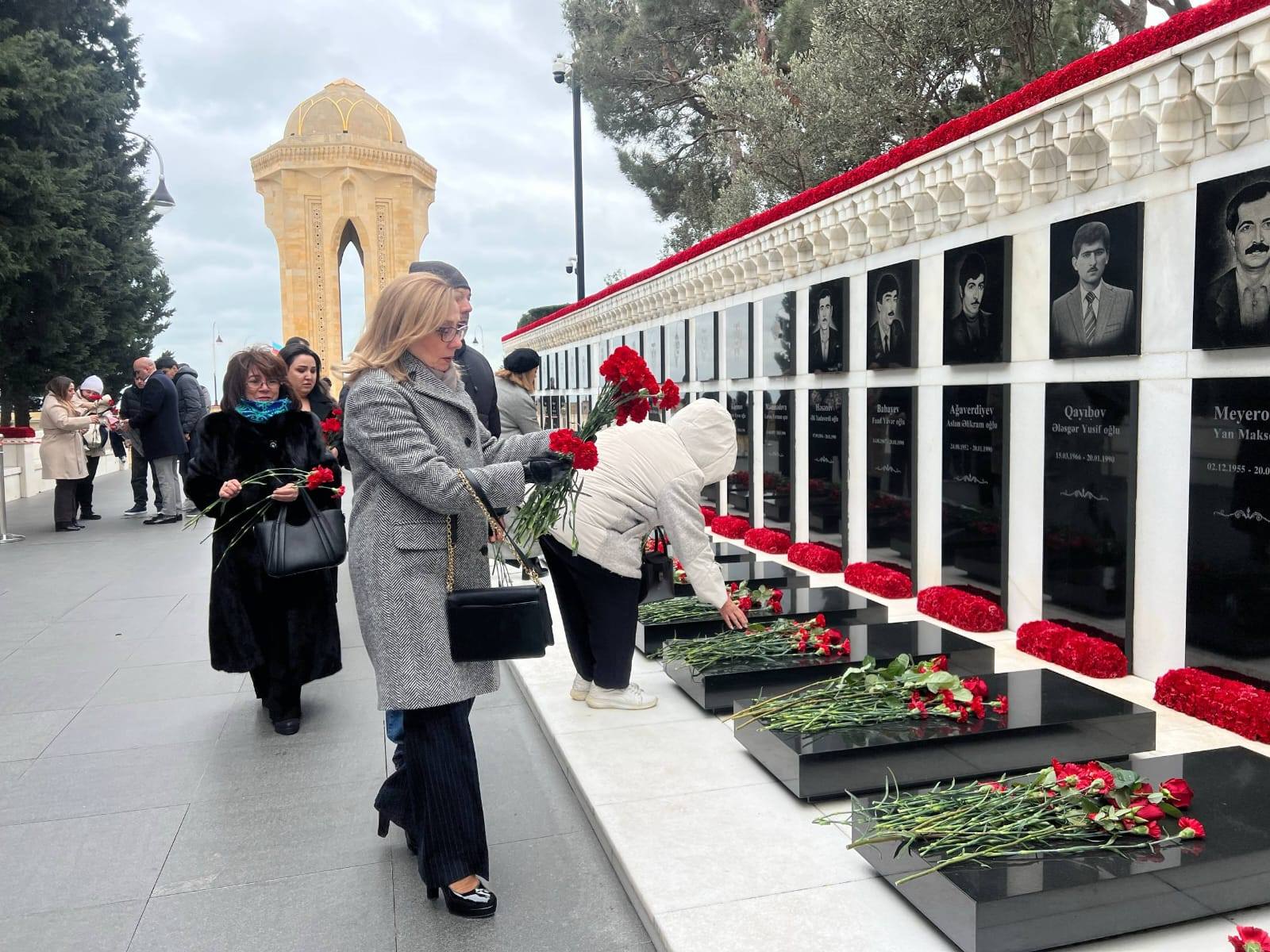 Ziyarət zamanı şəhidlərin məzarları üzərinə 20 Yanvar faciəsinin rəmzinə çevrilmiş al qərənfillər düzülüb, onların əziz xatirəsi hörmət və dərin ehtiramla anılıb.