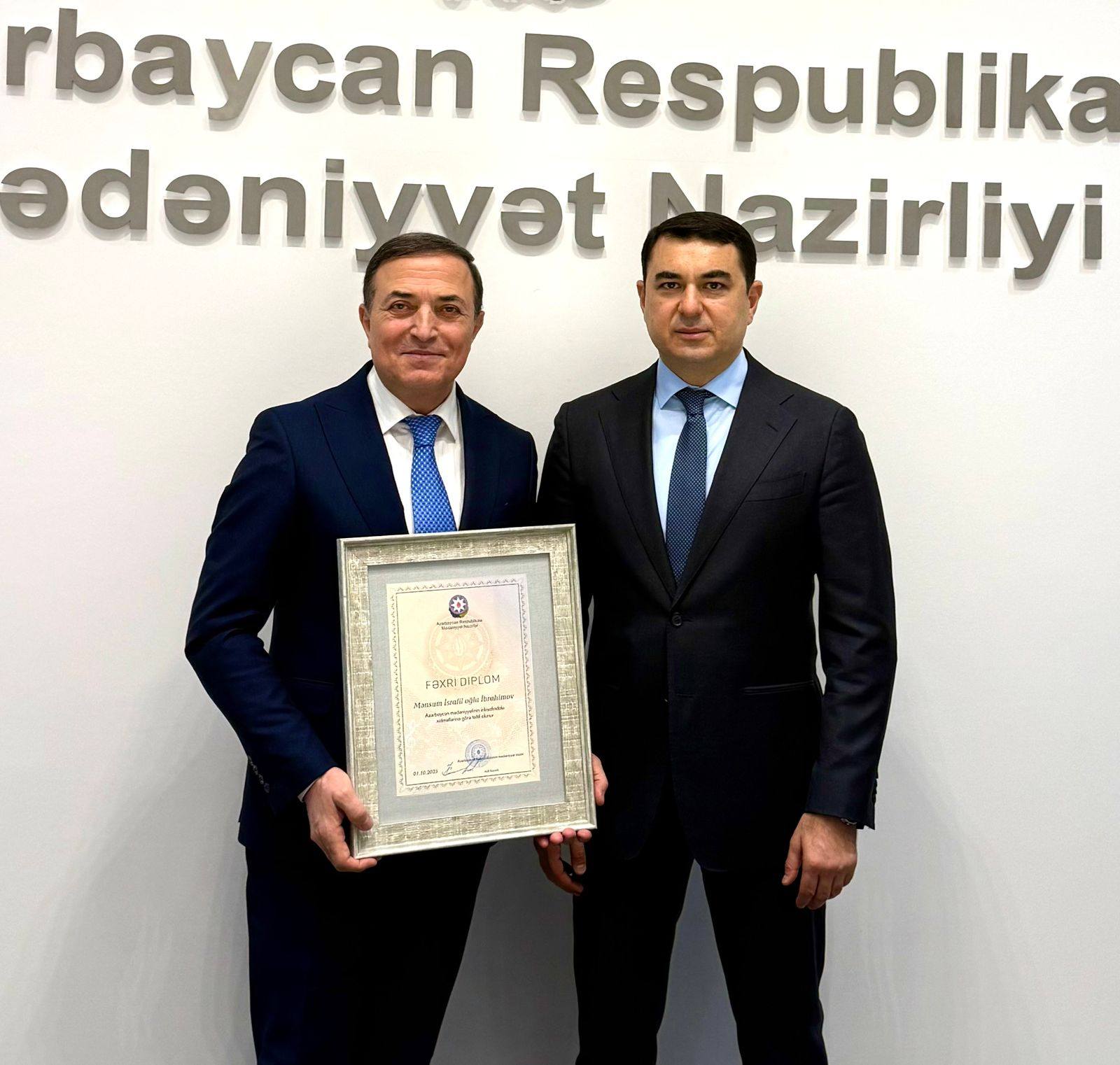 Azərbaycan Respublikasının Mədəniyyət naziri Adil Kərimli tərəfindən Azərbaycan Milli Konservatoriyasının Muğam (xanəndə) kafedrasının müdiri, Şərəf və Şöhrət ordenli, Xalq artisti Mənsum İbrahimova Azərbaycan mədəniyyətinin inkişafındakı xidmətlərinə görə “Fəxri diplom” təqdim edilib.